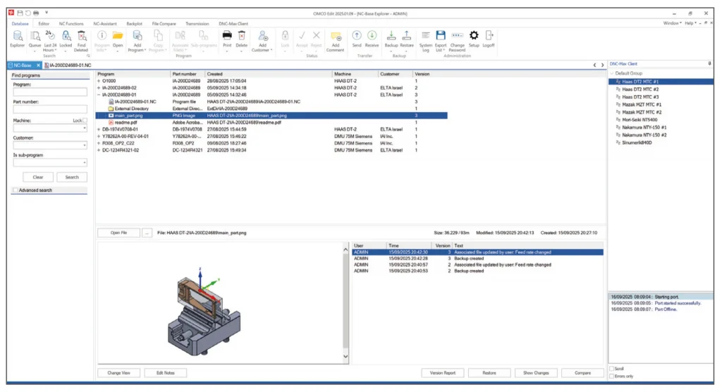 • Centralised Program Handling – Send and receive NC programs directly to and from CNC controls, keeping all revisions synchronised