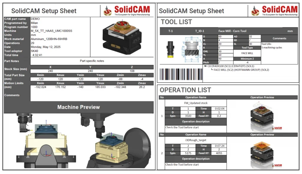 • End-to-End Integration – Works seamlessly with SolidCAM and SolidCAM for Operators, enabling a fully paperless workflow